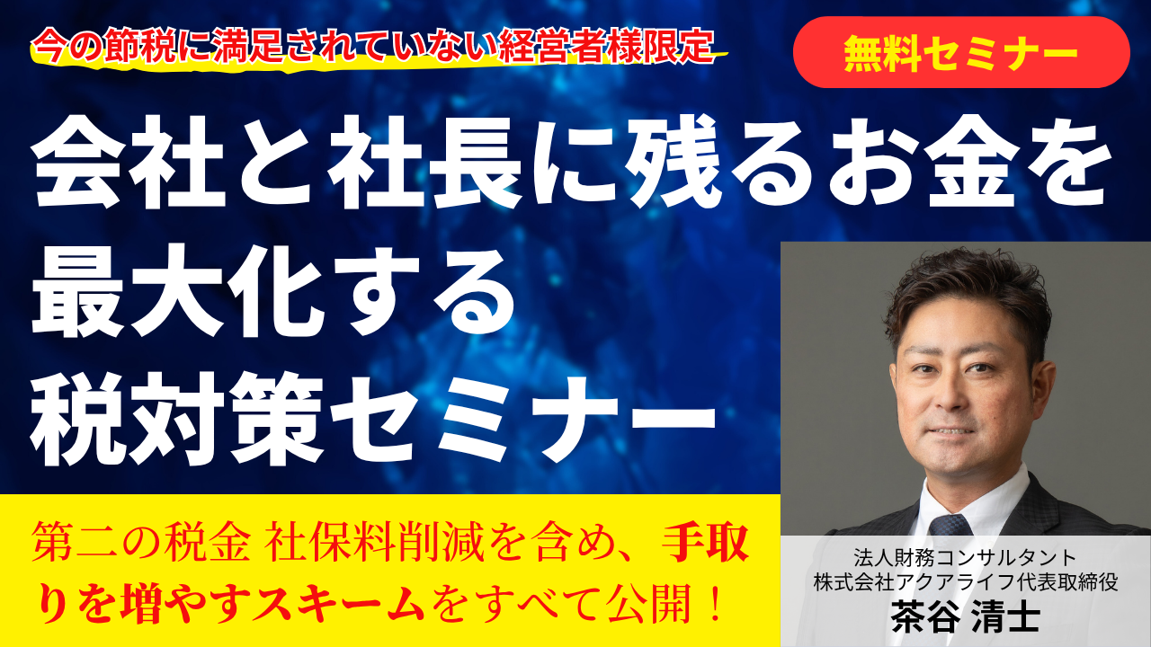 このセミナーでは、会社と役員個人に残るお金を最大化させるための、新たなスキームをすべて公開します。